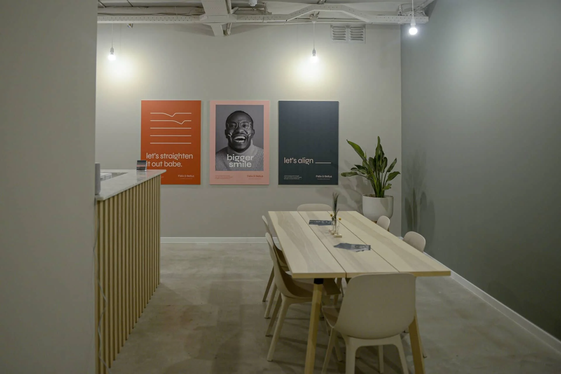 In het hart van Eindhoven opende een specialist in aligners (doorzichtige beugels) haar deuren. Samen met Scherpe Kantjes vertaalde March deze nieuwe praktijk naar een onderscheidende naam en een visuele identiteit die tot in elk detail van de ruimte is doorgevoerd. Zo kreeg Felix & Bellus niet alleen een gezicht, maar ook een verhaal dat voelbaar is zodra je binnenstapt.