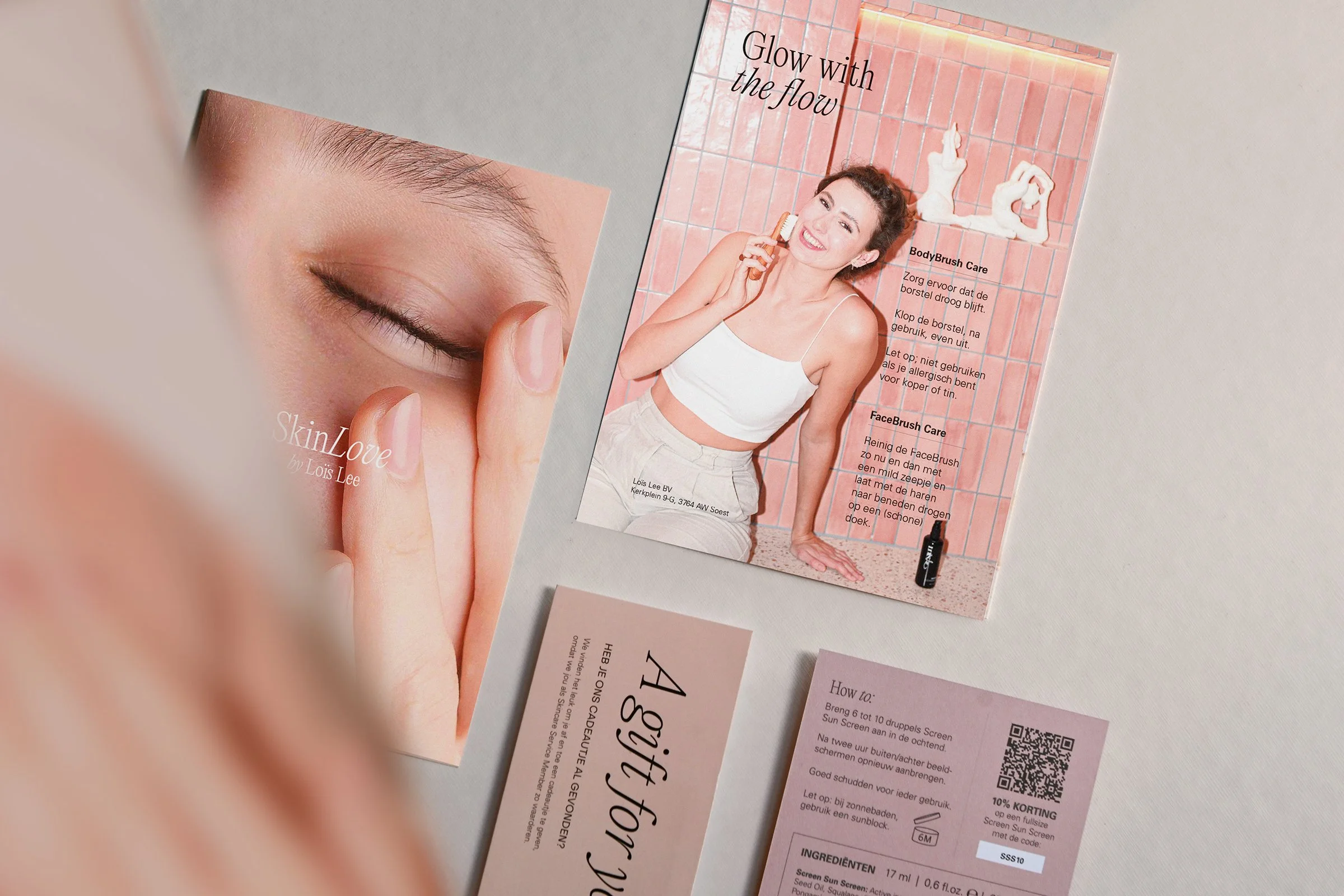 De branding ontwikkelde zich vervolgens vanuit die beeldtaal, organisch en intuïtief. Van verpakkingsontwerp tot brochures en andere merkdragers: elk element werd gevoed door dezelfde esthetiek. Het resultaat is een merkbeleving die consistent aanvoelt, zonder statisch te worden.