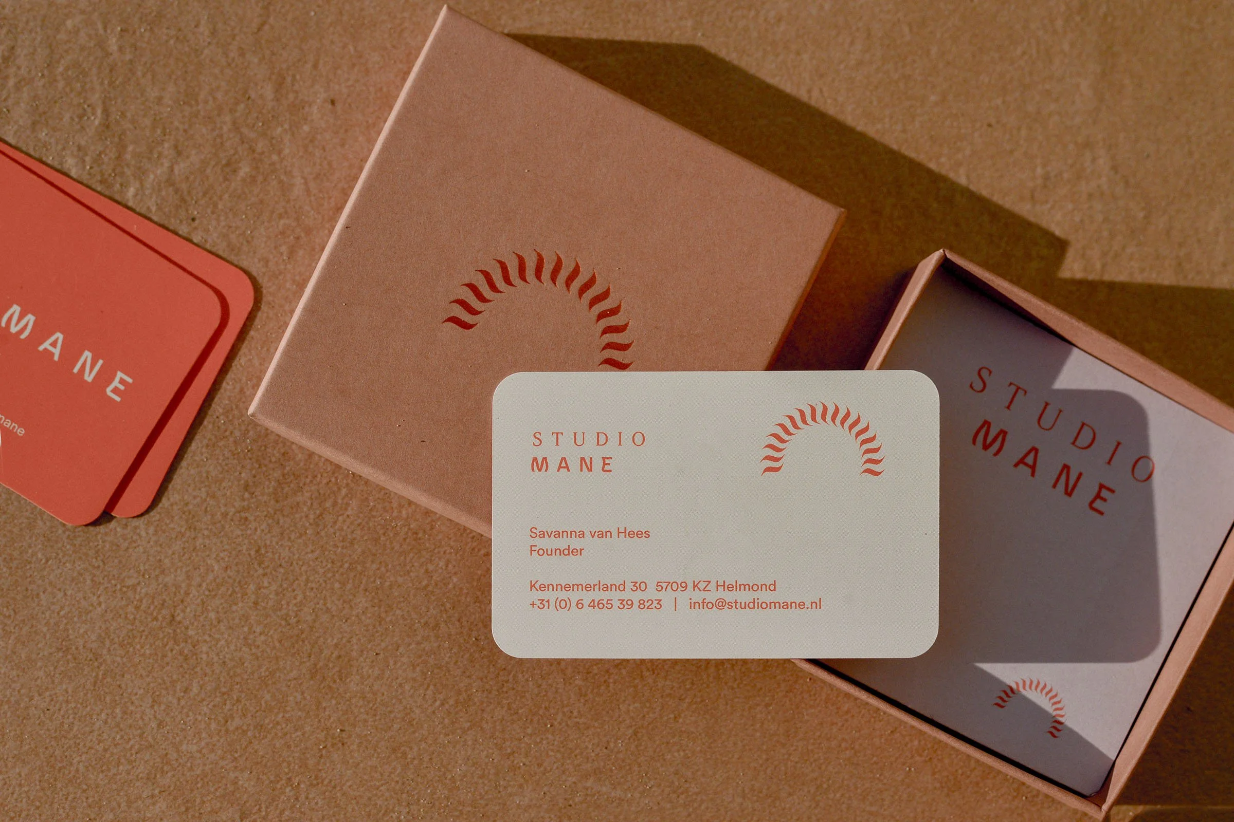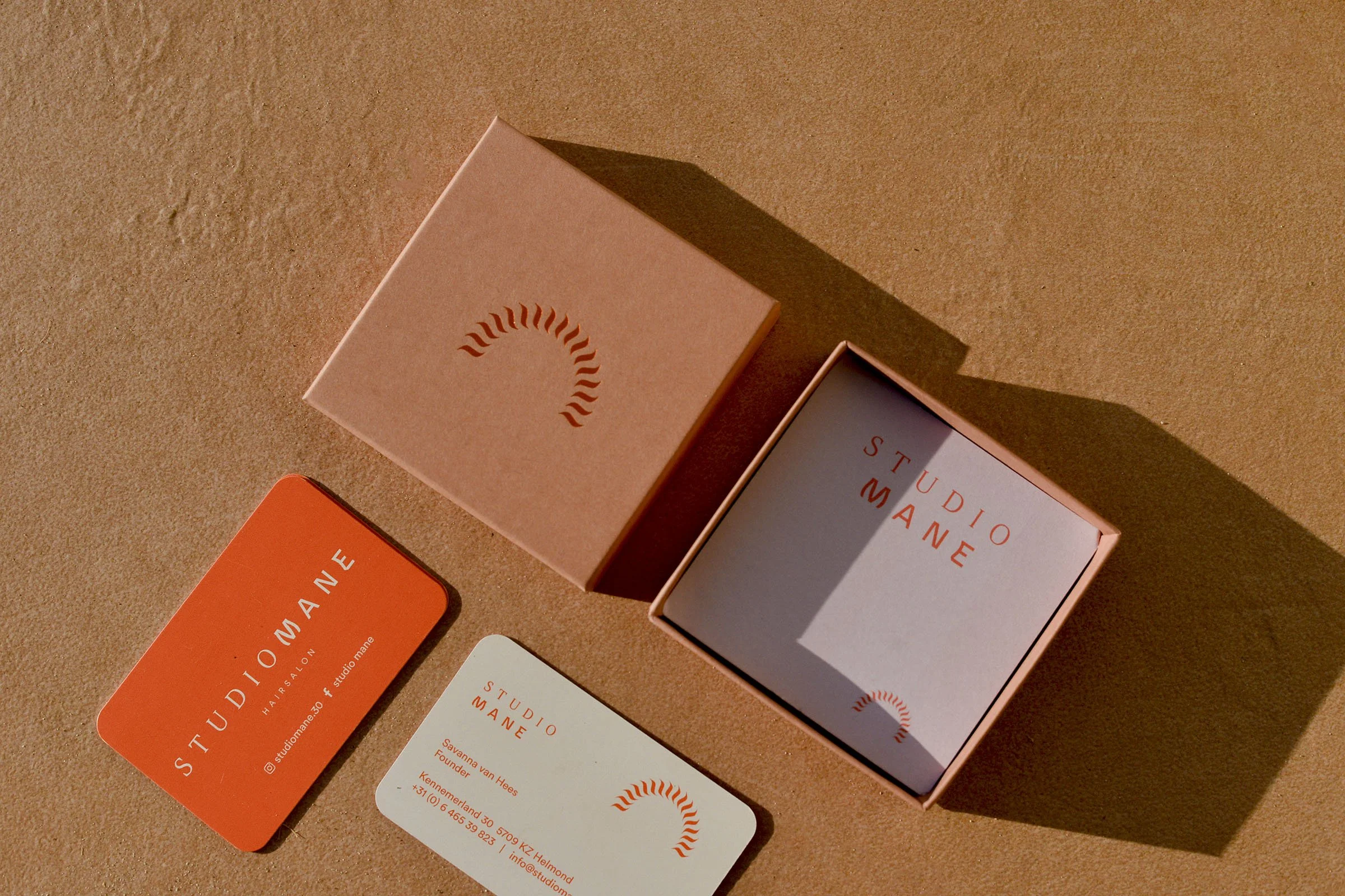 De oranje accenten en het handmatig ontwikkelde logo zorgen voor een unieke, persoonlijke uitstraling. Het resultaat is een identiteit die Studio Mane herkenbaar maakt én haar creatieve energie volledig weerspiegelt.