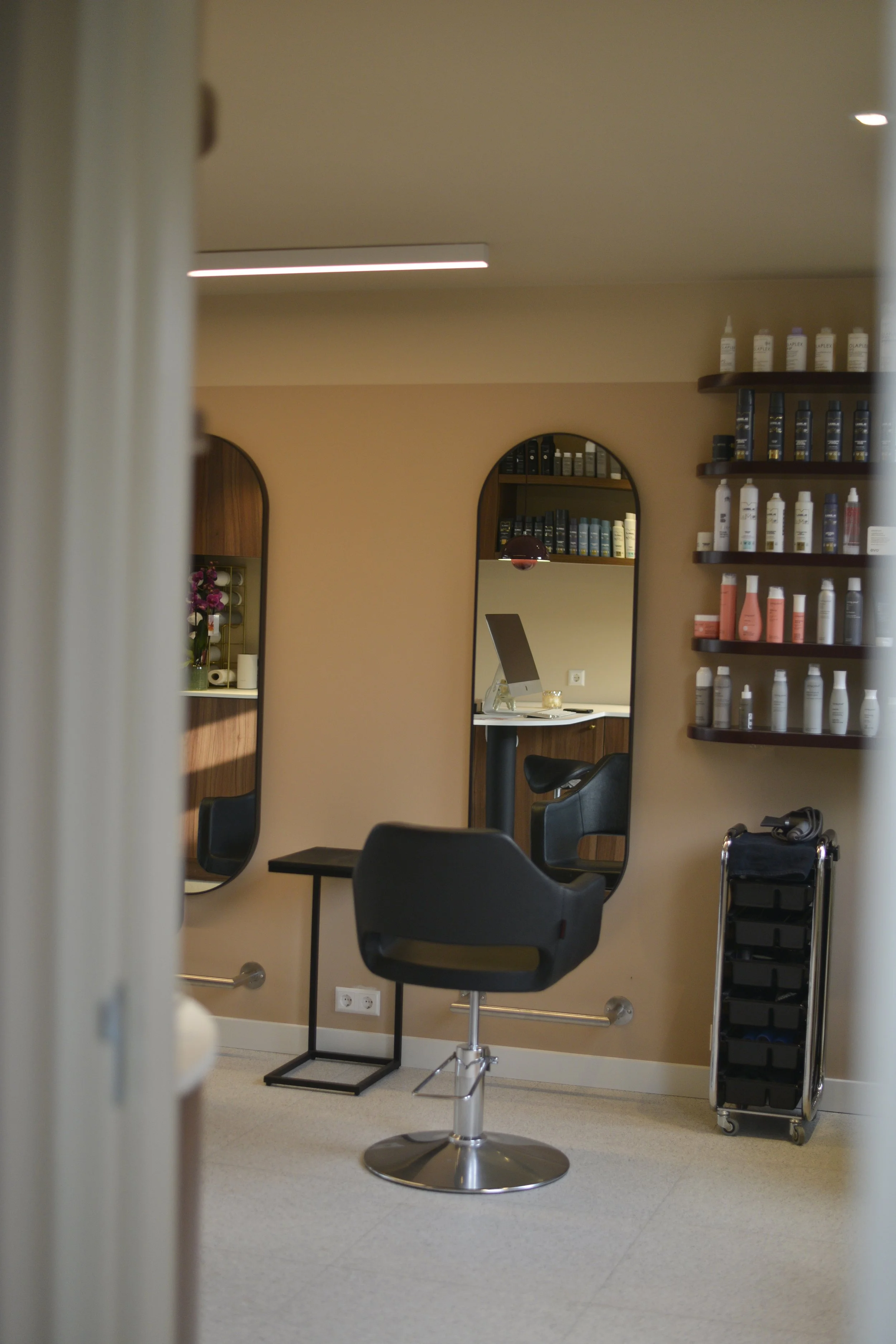 De investering in een prachtige salon aan huis bracht veel keuzes en kosten met zich mee. Daarom kozen we voor een aanpak waarin we telkens een onderdeel oppakten en uitwerkten. Zo kreeg de stijl langzaam maar zeker vorm consistent, krachtig en volledig passend bij Studio Mane.